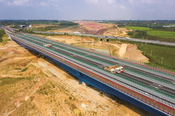 G312合六葉公路橋跨越引江濟淮航道,是國家重大跨省、跨流域調水工程——引江濟淮工程的重要組成部分。該橋為路改橋工程,在原有國道改航道的基礎上,建設鋼箱梁橋連接河堤兩岸。大橋全長540米、主跨180米,整橋鋼箱梁由4幅連續梁組成,橋面全寬52.5米,為雙向8車道。該橋的開通運行,為加快引江濟淮河渠剩余工程完成創造了施工條件。