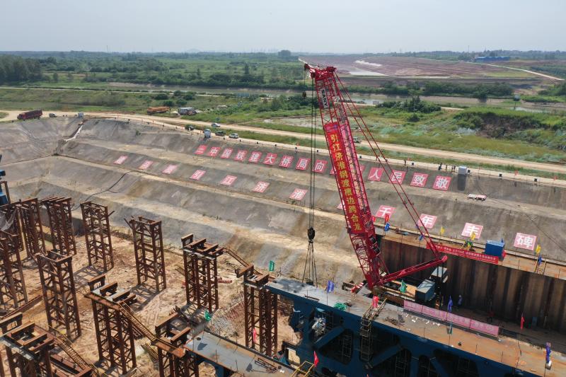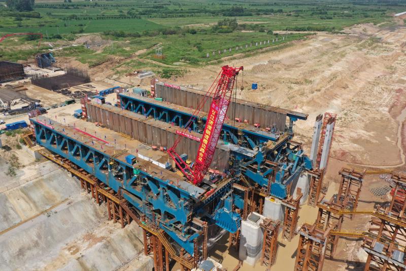 自此,引江濟淮工程淠河總干渠鋼渡槽自2019年10月28日始架梁以來,歷時9個月取得了階段性進展——鋼渡槽邊跨全部合龍。